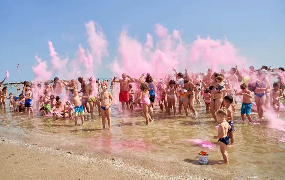 Die Maskottchen Ginetto, Gisella und Gastone empfangen die Kinder mit Umarmungen, Lächeln und wunderschönen Erinnerungsfotos.